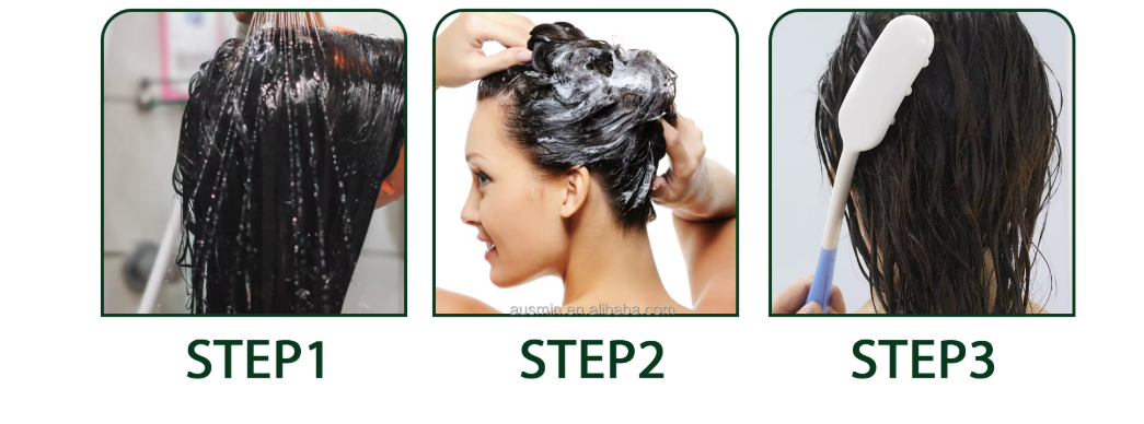 Mouillez bien vos cheveux à l’eau tiède et appliquez une quantité appropriée de shampooing sur le cuir chevelu.